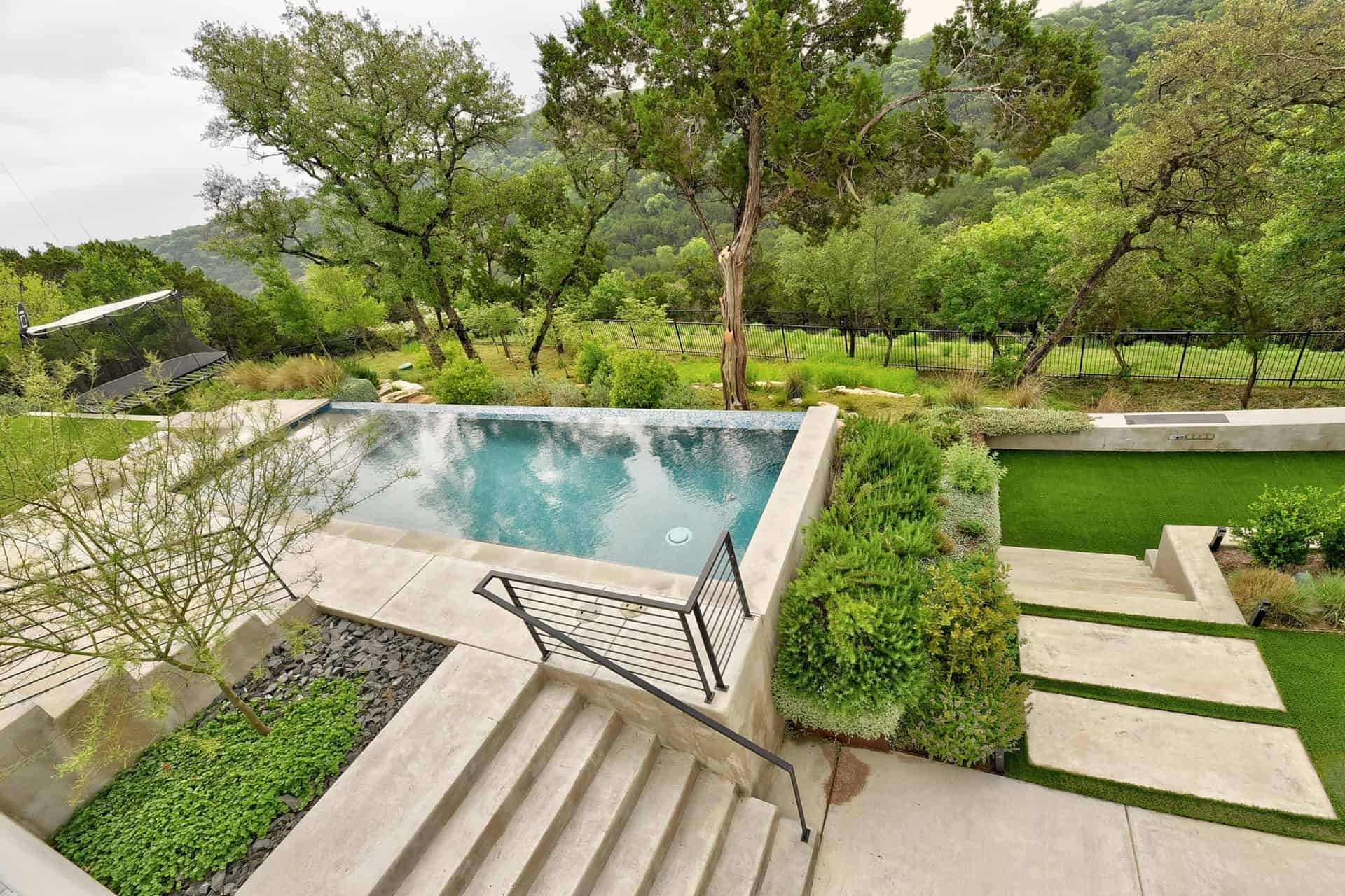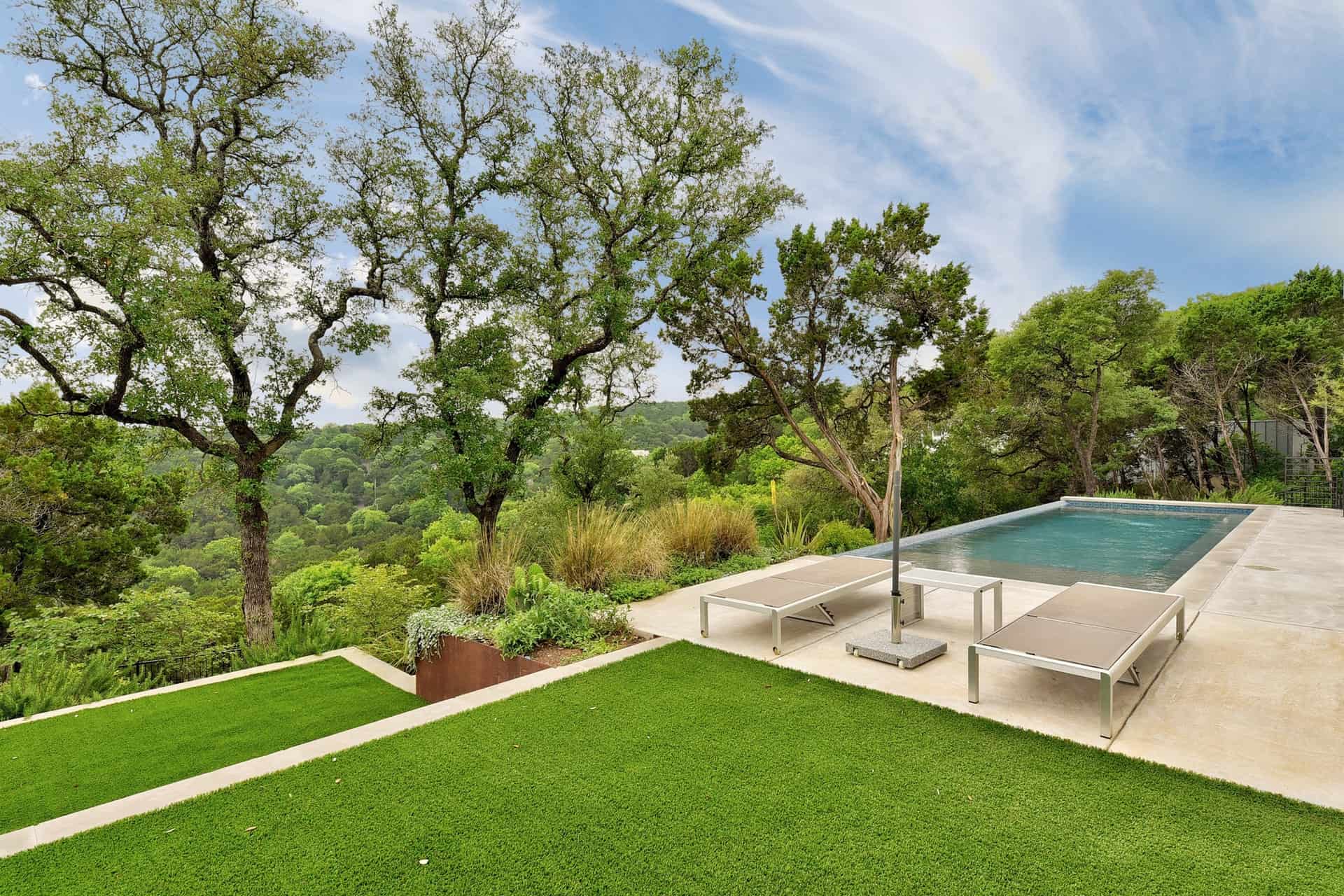 Nestled in the rolling hills of Westlake Hills, you’ll find a unique retreat from the city but still close enough to enjoy all that Austin, Texas has to offer. The dramatic fourteen-foot living space and walls of glass take in expansive, panoramic views which extend beyond the outdoor terrace and pool, across a tree-filled gully to the greenspace below.