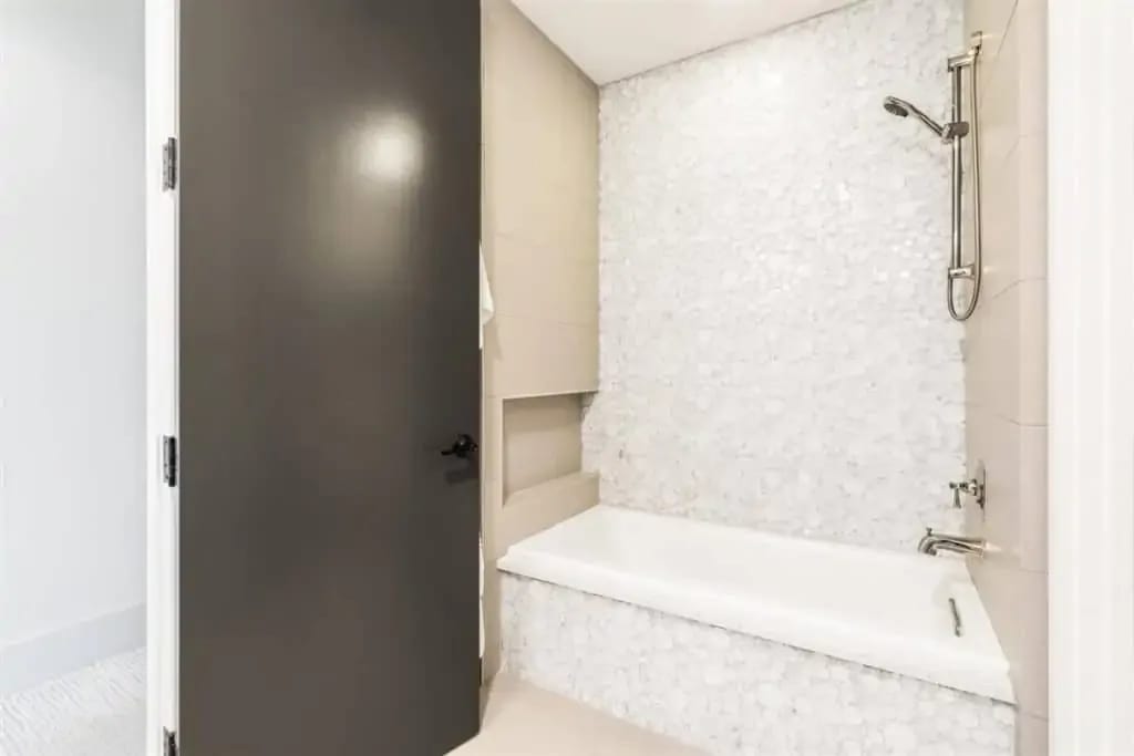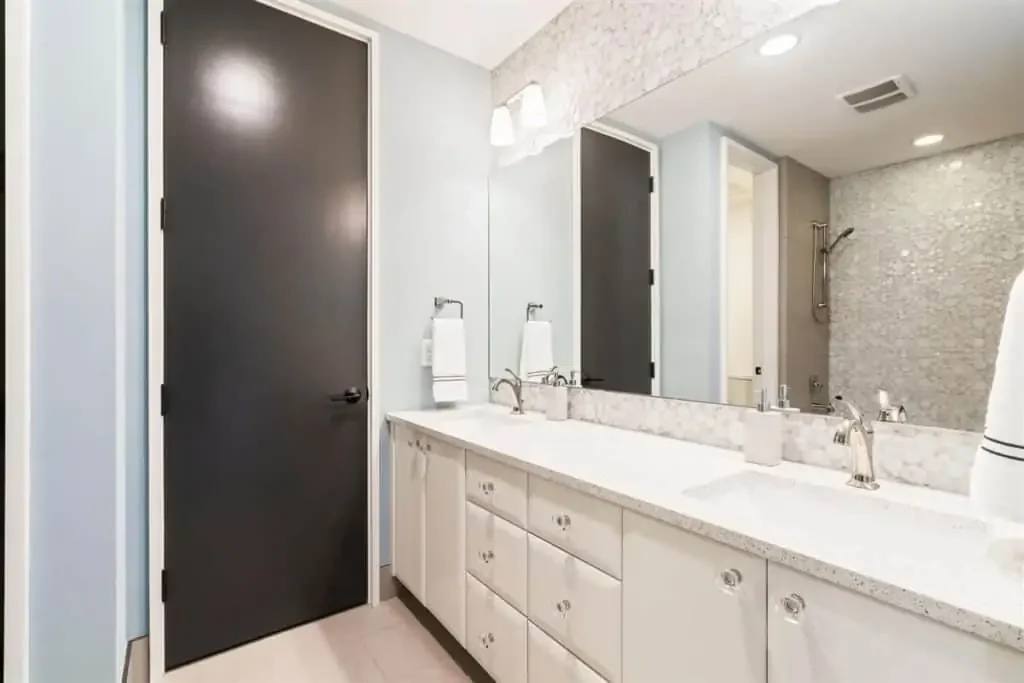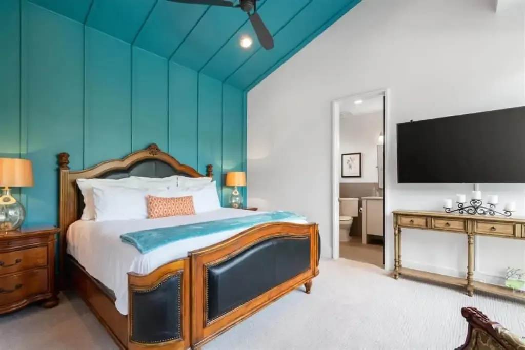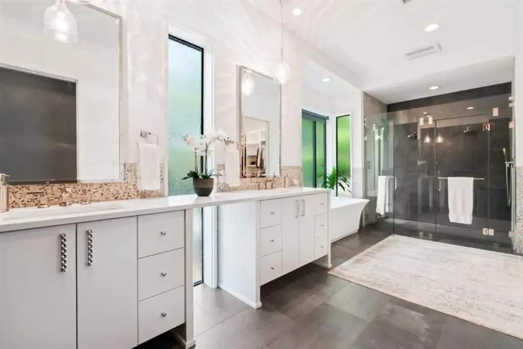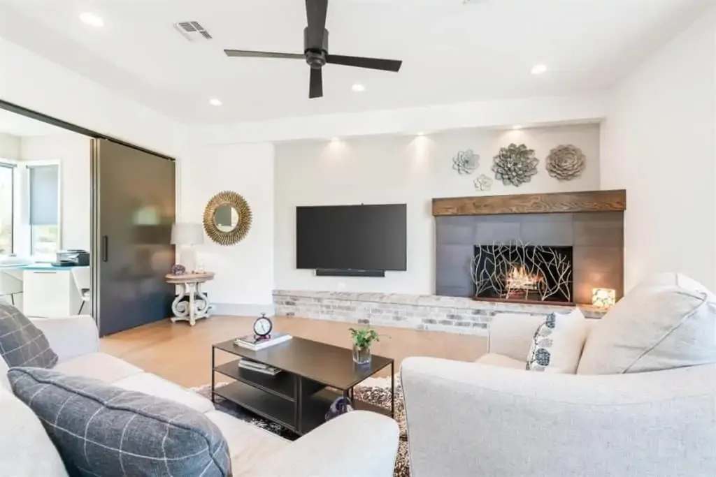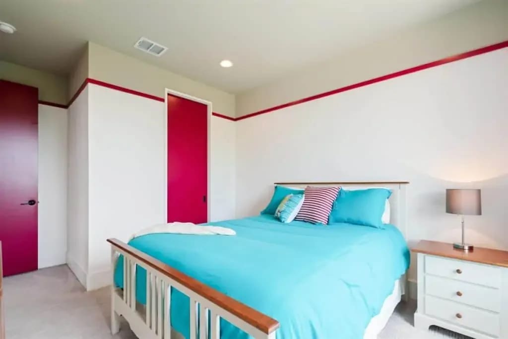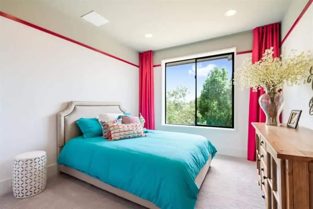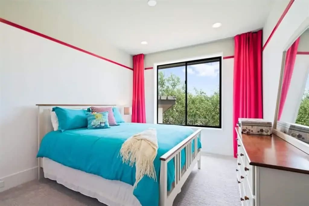 Retreat to the private master suite/ wing with floor-to-ceiling windows and a view to your beautiful pool. Notice the reclaimed wood inlay from Johnson City behind the master bed. Relax in an oversized tub and a separate dual shower head walk-in shower. The master closet is a fashion lover ‘s dream with pocket doors, high ceilings, spacious enough for a sitting area, and custom built-ins. The master bedroom itself is voluminous and has gorgeous windows that allow for both seclusion and tranquility.