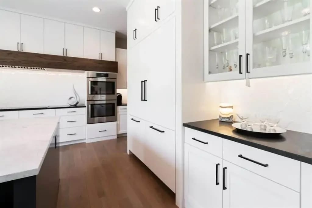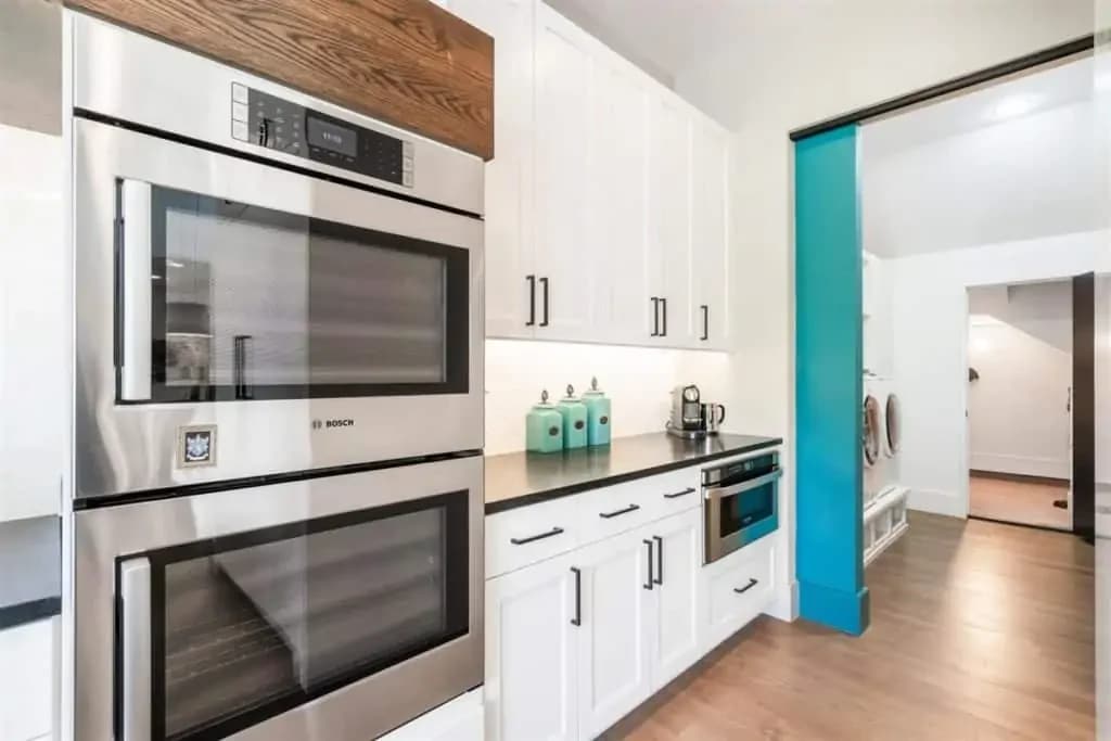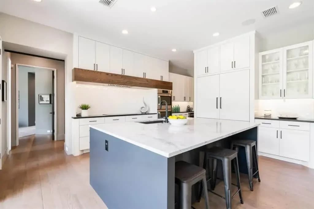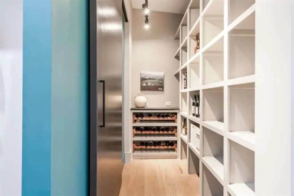This inviting space features a gourmet kitchen that will inspire your inner- Chef that includes an over-sized white marble island, top-of-the-line Bosch appliances, a massive walk-in pantry, wine nook, extensive cabinetry & more. The Sub-zero built-in fridge can hold enough for a feast and is beautifully built to go along with all the custom cabinetries.