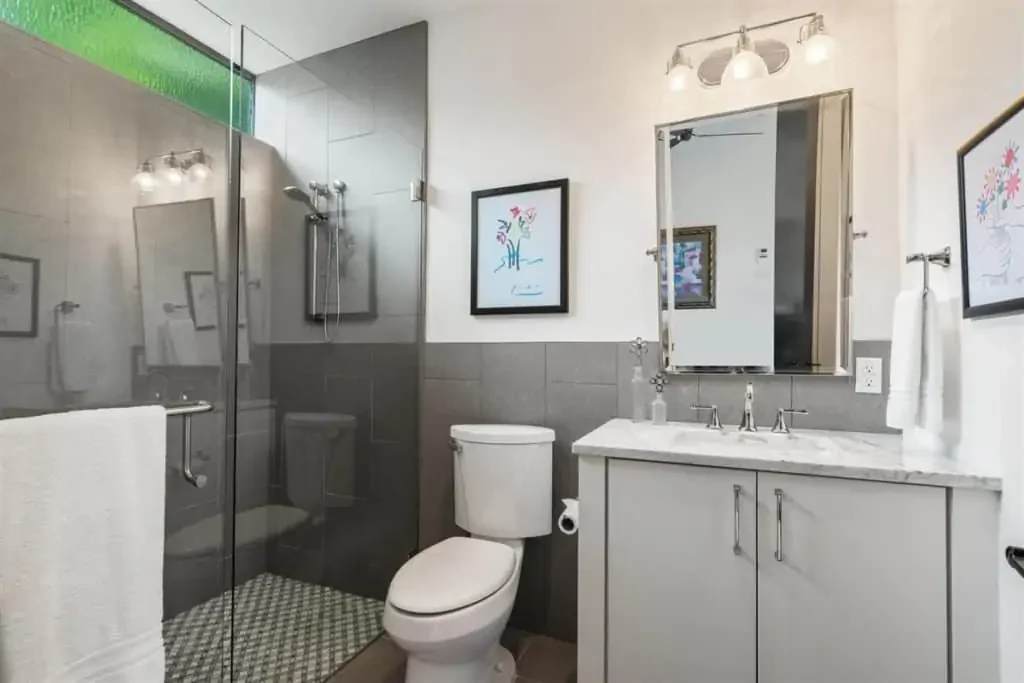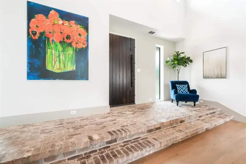 Notice the half bathroom with brick accents, dazzling light fixtures, and floor-to-ceiling window as you go up the stairs to the second floor full bathroom with designer tile and luxurious ambiance. This home has a special loft in the media/playroom. The media room has views and is light and bright. Two adjoining bedrooms down the hall with oversized windows and walk-in closets.