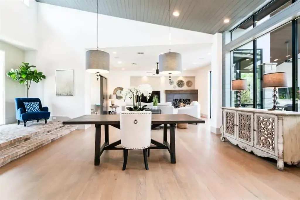 With meticulous attention to detail and quality finishes, this Post-Modern Contemporary home was crafted by award winning, Triton Custom Homes and designed by Cornerstone and is a is a true example of exquisite craftsmanship, refinement, and sophistication. Surrounded by floor to ceiling windows light-filled spaces, you will be stunned by the unique rockwork, built-ins, designer tile, shiplap ceilings, and gorgeous white oak hardwood floors. This home is truly- a one of a kind. The openness and flow of this floor plan makes it incredible for daily function as well as being perfect for entertaining friends & family.
